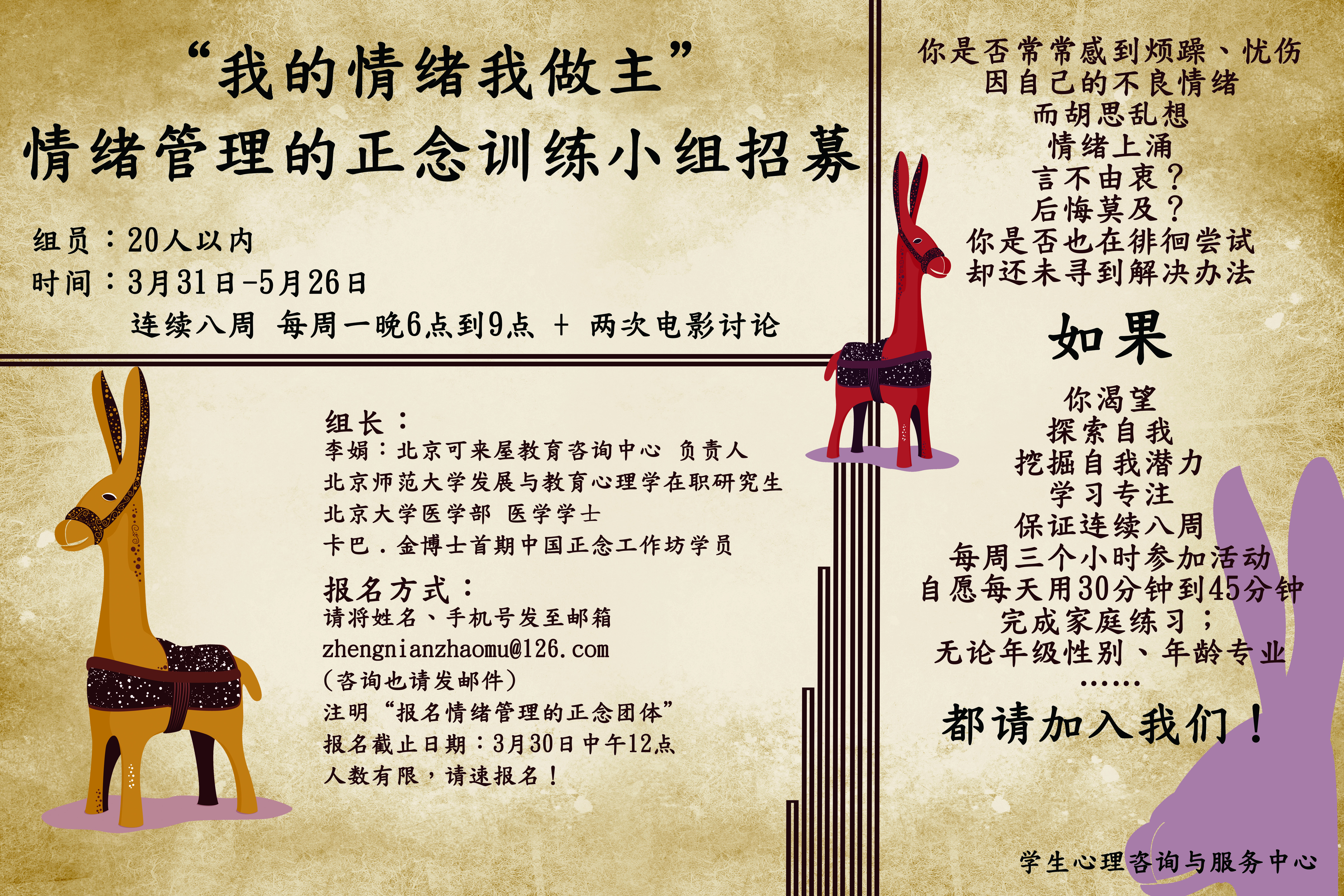 “我的情绪我做主”情绪管理的正念训练小组招募(2014年3月)